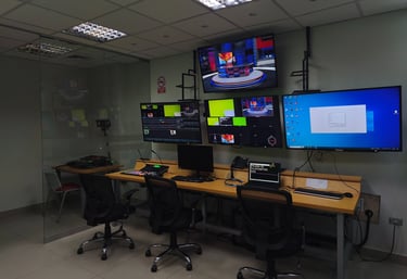 Brindamos asesoría integral para la implementación y modernización de estudios audiovisuales, salas de producción y canales de TV basados en tecnología IP. Diseñamos flujos completos con NDI, SRT, Dante y soluciones híbridas, incluyendo arquitectura de red, selección de equipos, configuración de sistemas, integración de vMix, TriCaster y plataformas en la nube.