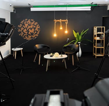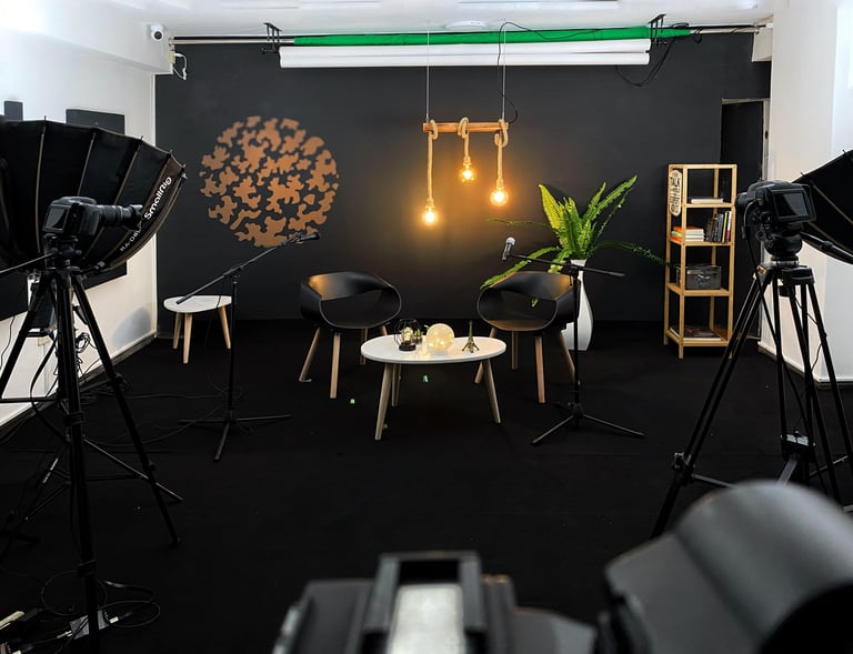 Grabaciones de podcasts con sonido claro y ambiente cómodo, ideales para contar historias que conectan.