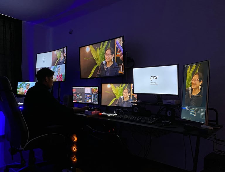 Producción técnica y dirección para eventos presenciales y virtuales, asegurando una experiencia fluida y profesional.